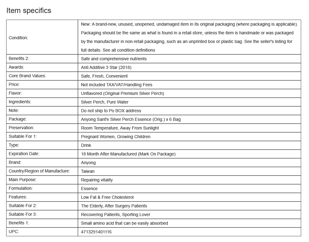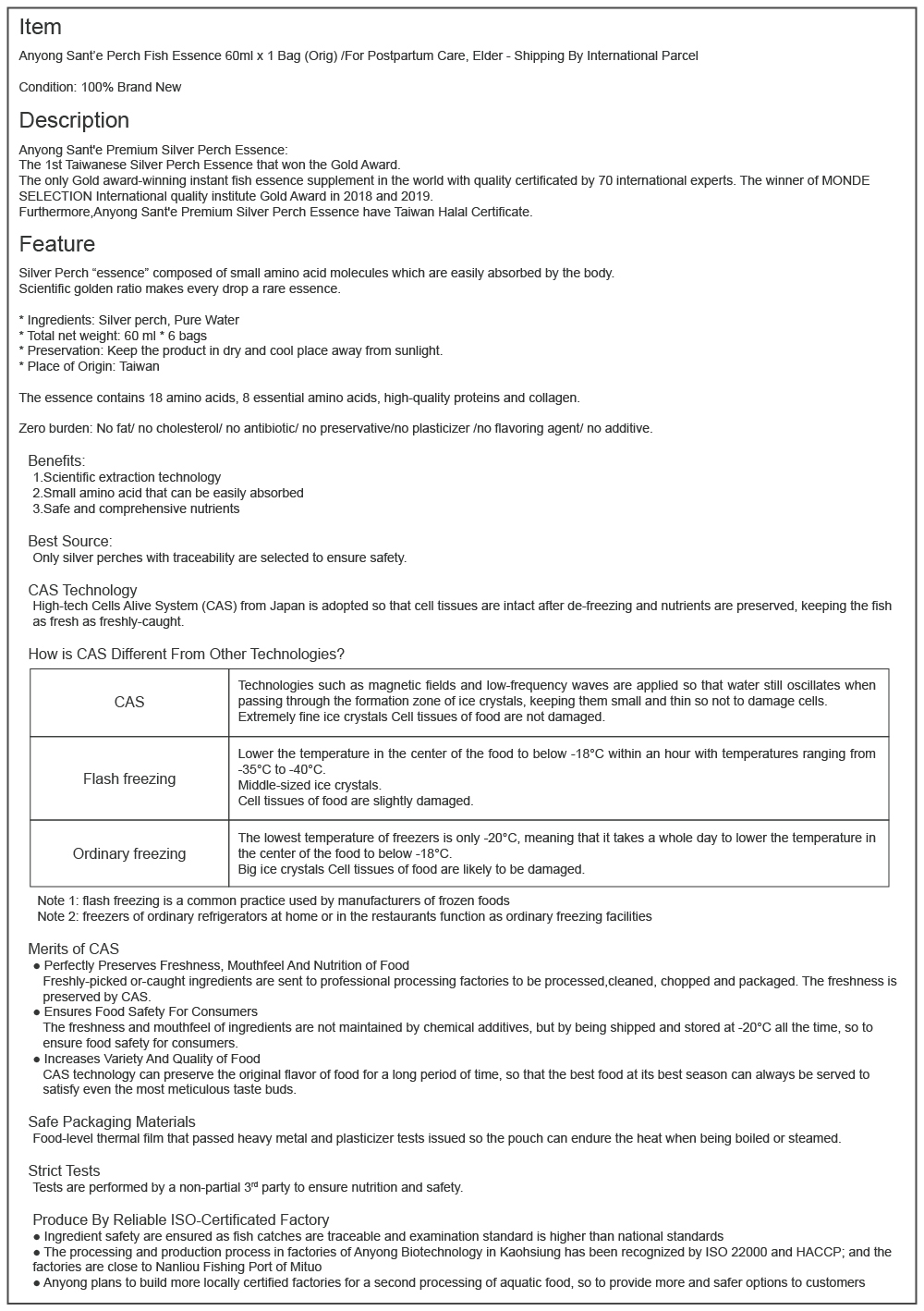 Anyong Sant’e Perch Fish Essence 60ml x 6 Bags (Orig) /For Pregnant, Patients-USA