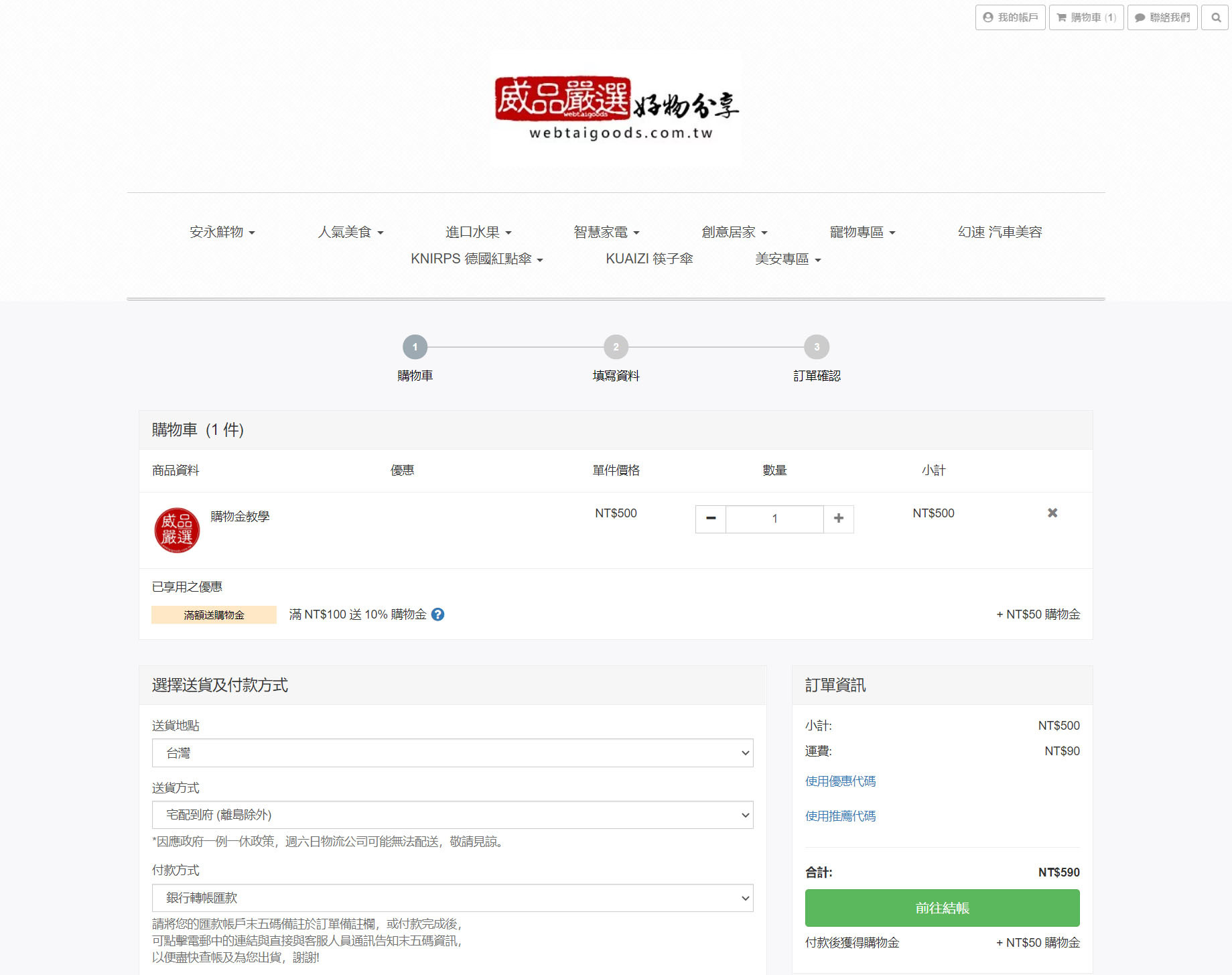 至購物車結帳時,就會顯示訂單回饋的購物金金額。