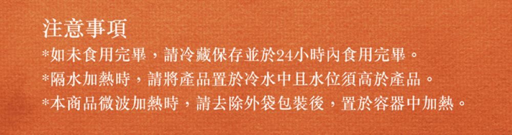 -如未食用完畢,請冷藏保存並於24小時內食用完畢