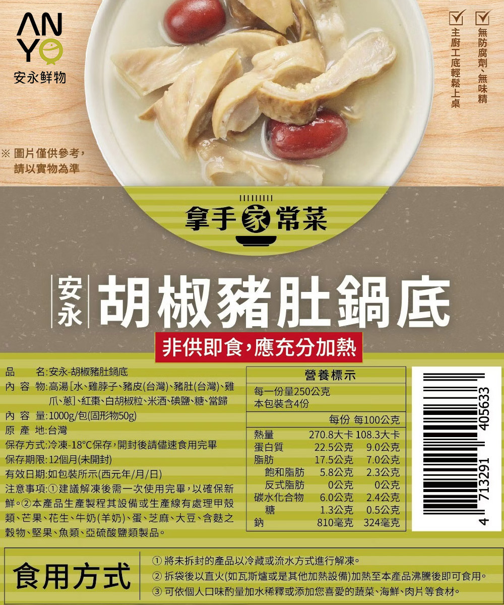 【安永鮮物】胡椒豬肚鍋底(1000g/包)(結帳再享9折優惠)