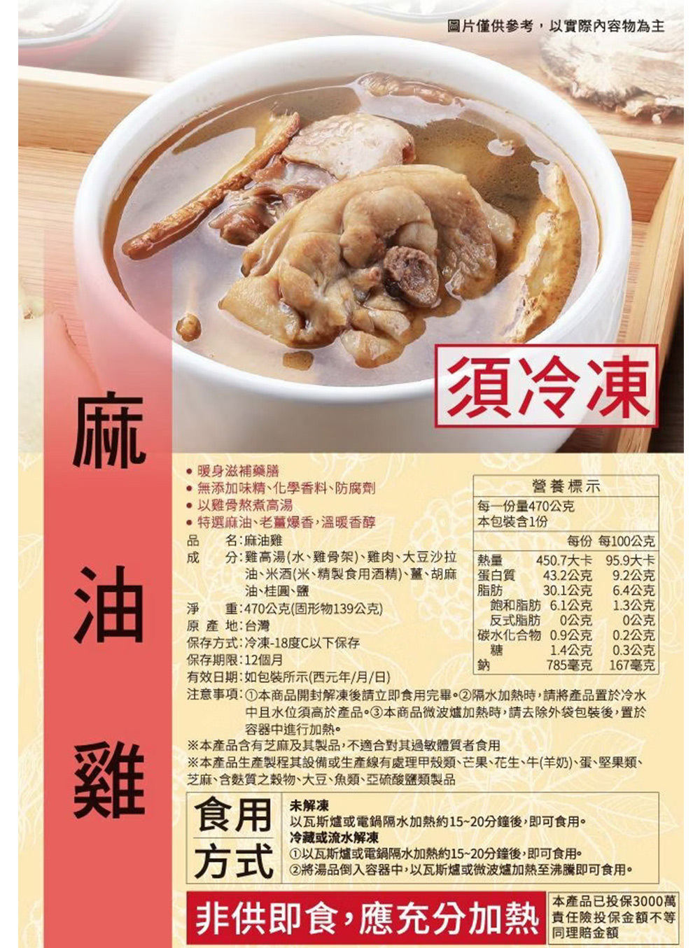 【安永鮮物】麻油雞(470g/包)(結帳再享9折優惠)