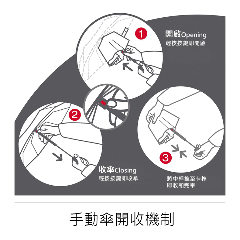 傘骨材質:高密度強化玻璃纖維、強化鋁鎂合金、防鏽電鍍金屬、ABS樹脂握把