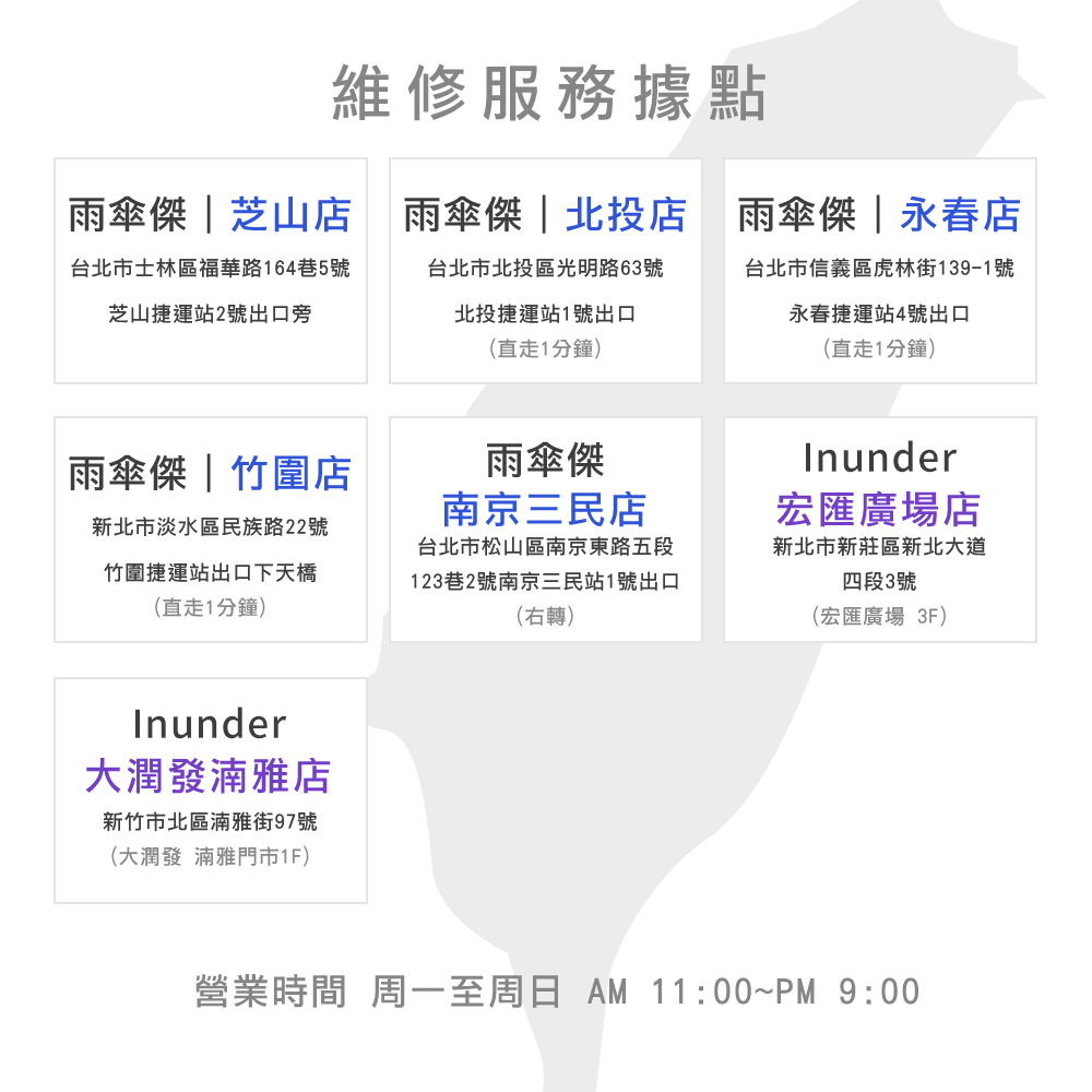 - 保固期間或過保後若需執行非保固範圍內之維修將酌收費用,傘布之破損視毀損情況另行報價。