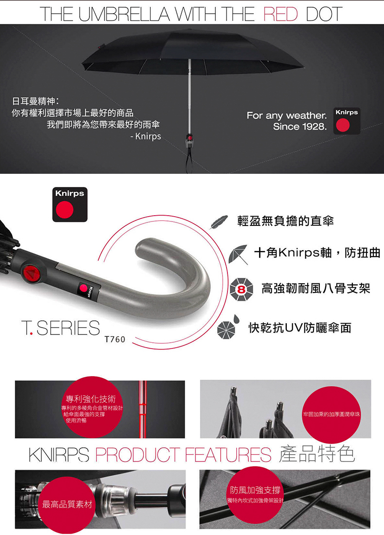 【Knirps 德國紅點傘】直立式雨傘 (T.760) ( 結帳再享9折優惠 )