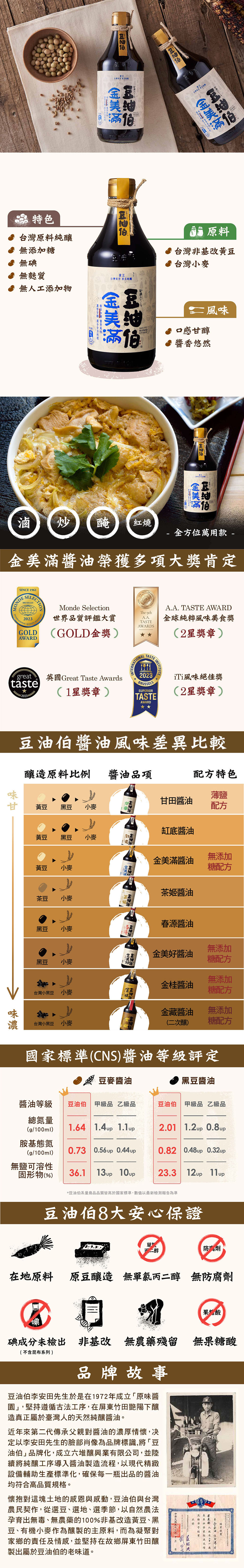 品名:豆油伯金美滿無添加糖釀造醬油(黃豆)