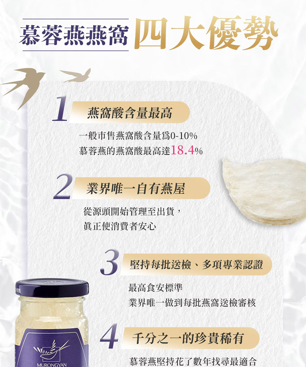 燕窩酸最高達18%,業界NO.1,補充滿滿燕窩營養