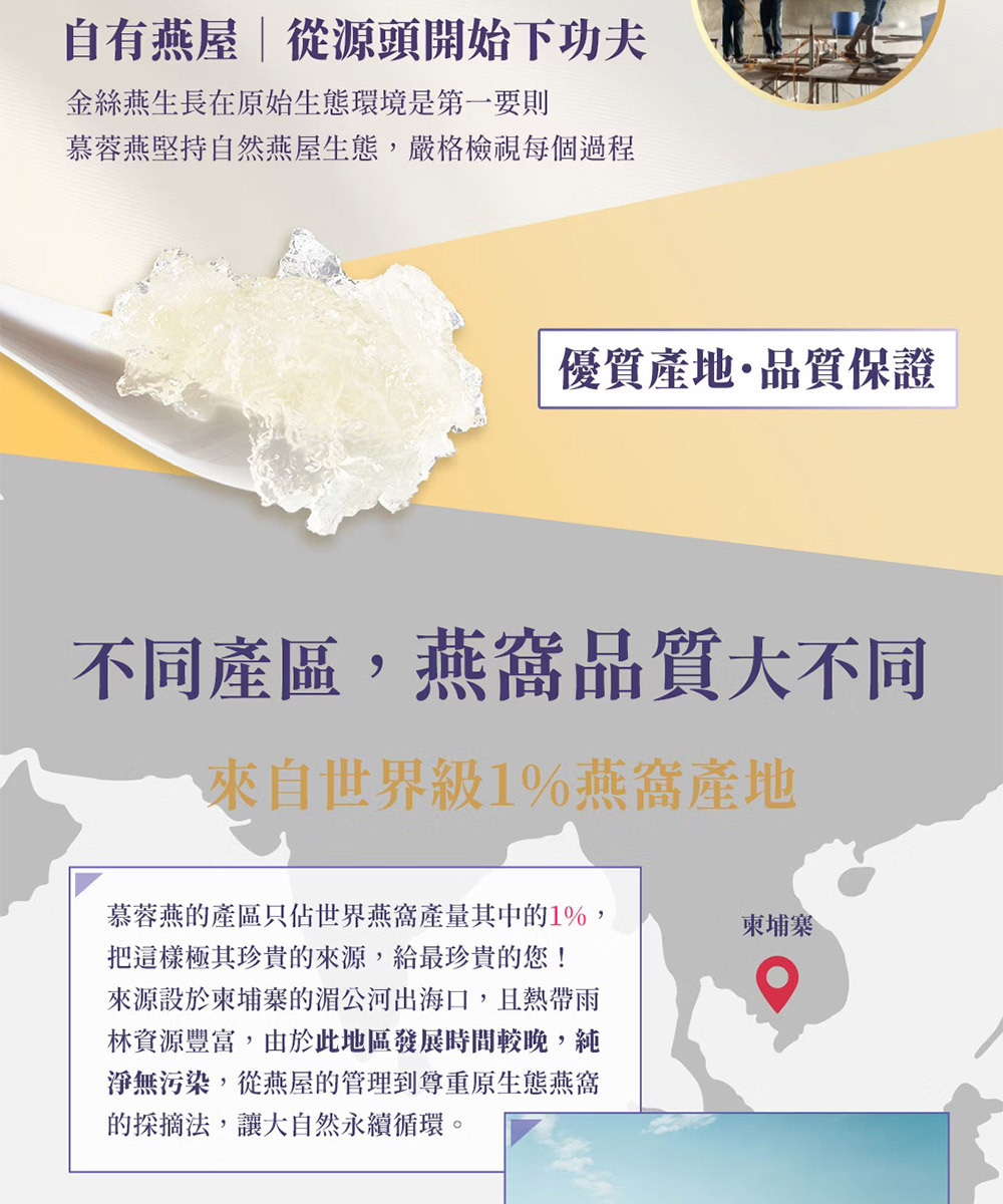 嚴選自柬埔寨、越南的頂級自產燕窩