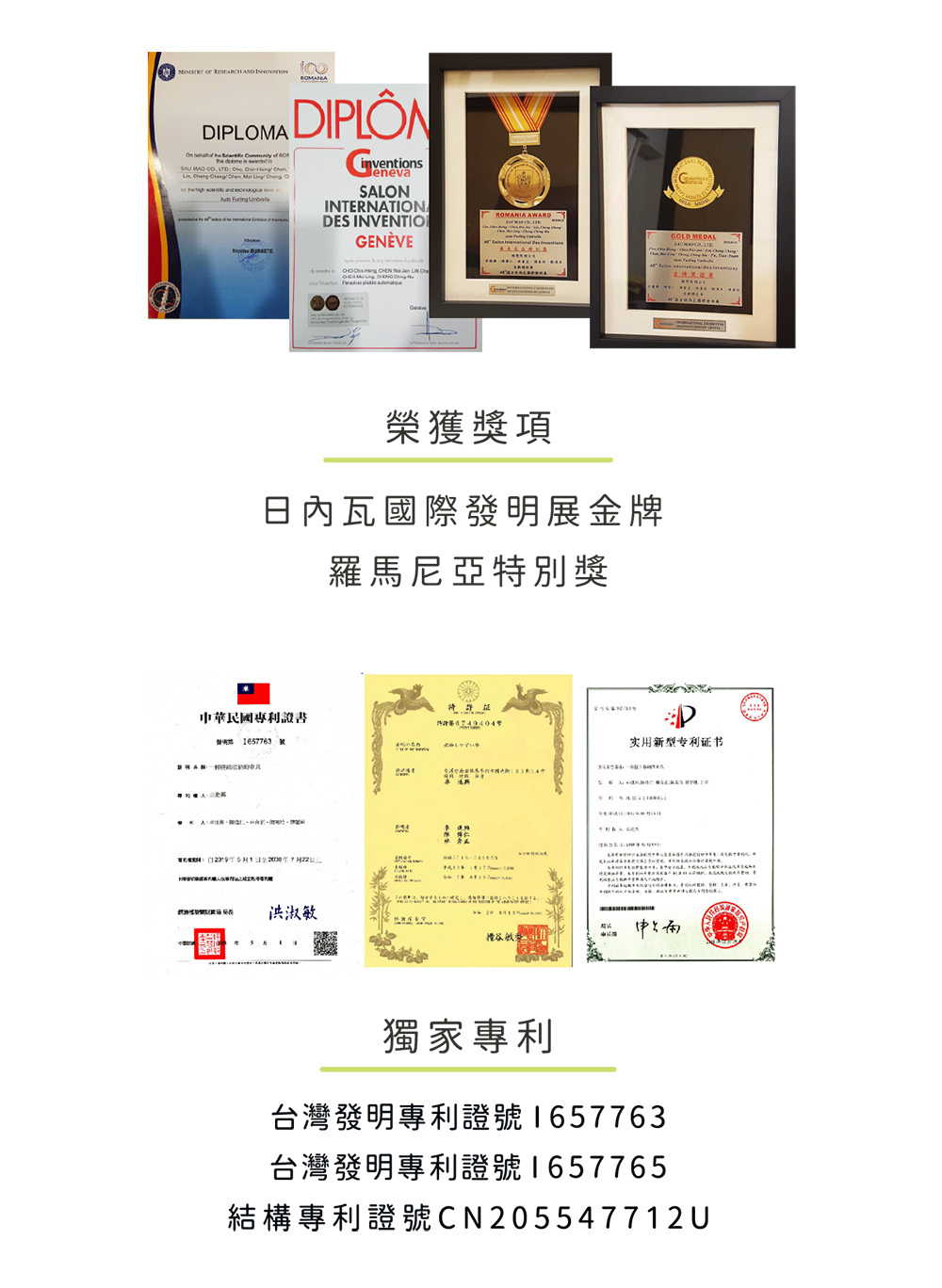 傘骨材質玻璃纖維、防鏽電著鋼材、鋁合金