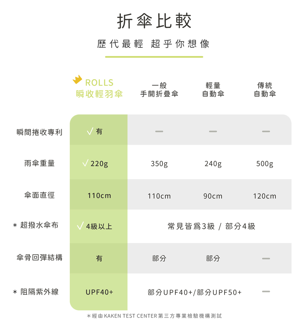 商品名稱:ROLLS slim 瞬收輕羽傘