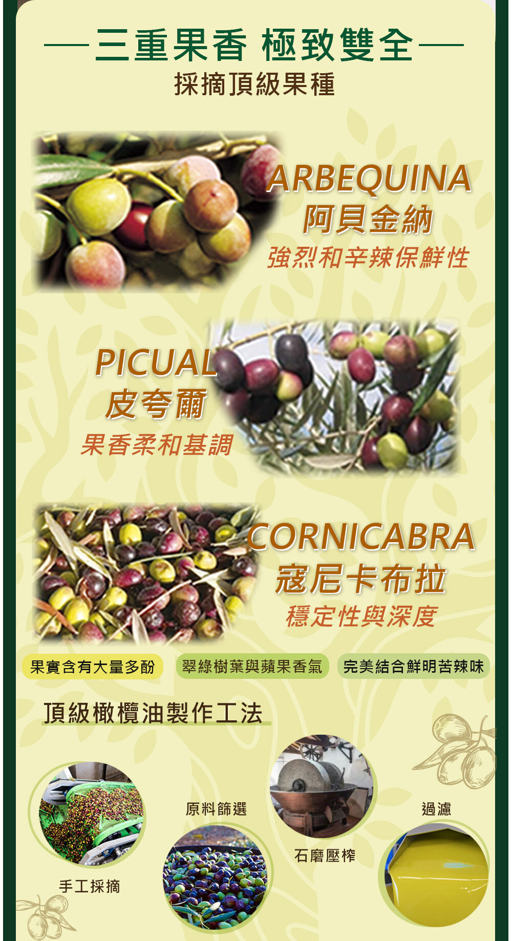 品種 : 阿貝金納Arbequina / 皮夸爾Picual / 寇尼卡布拉Cornicabra