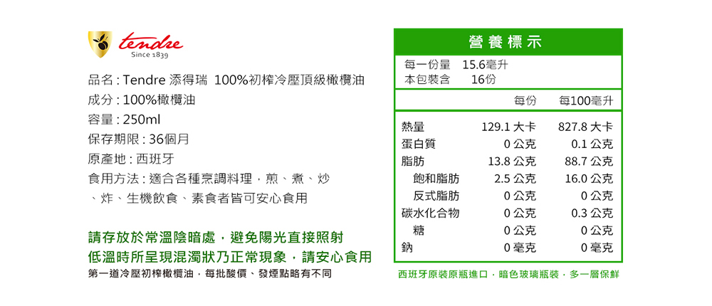 商品名稱:【添得瑞】100%冷壓初榨頂級橄欖油Extra Virgin Olive Oil