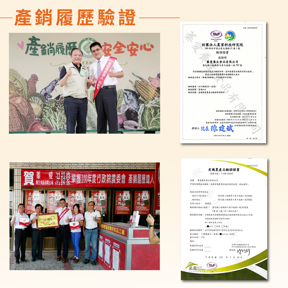 產銷履歷,從原料到製造生產過程都清楚透明,讓您實在安心