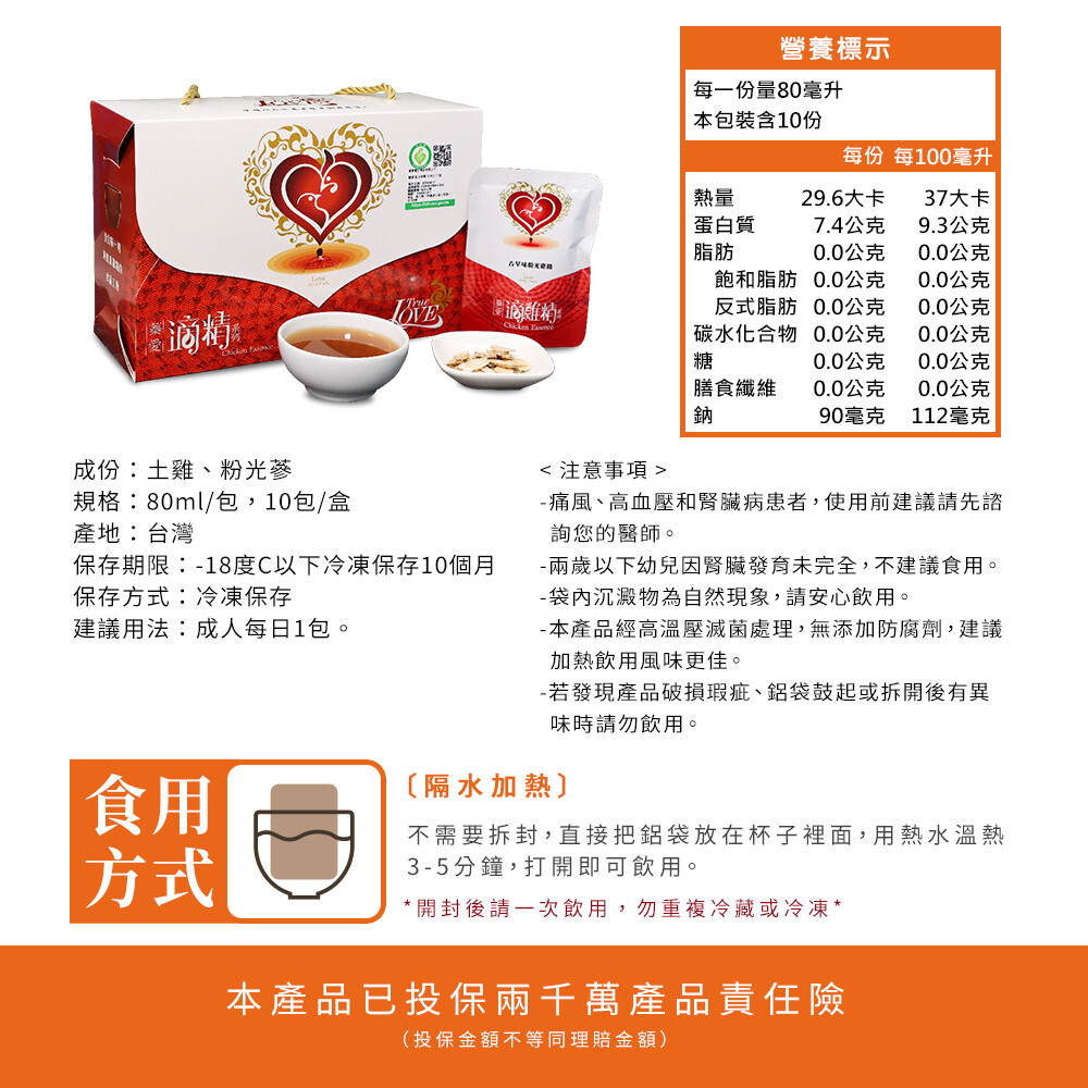 有了深厚的感情,進而決定將雞精當作家傳的事業,了解國人對於家人之照顧與補身養生觀念的重視,蓁愛堅持優質是最好的品牌,