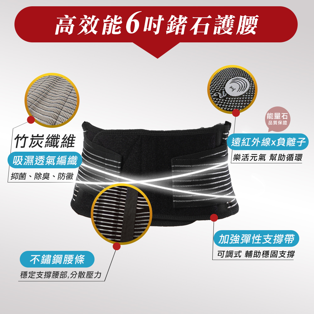 品名 : 高效能6吋脊椎型鍺石護腰(M-XL)