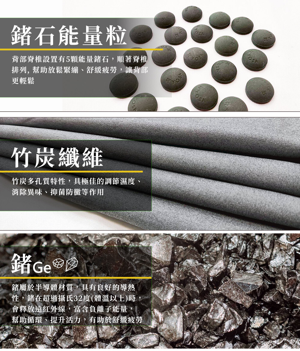 成份 : 橡膠30%、尼龍10%、棉紗30%、負離子竹炭紗30%